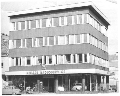 Møller radioservice hadde fra 1947 holdt til i nabobygget, den delen av Storgata 87 som vendte mot torget, men i oktober 1963 flyttet han inn i eget bygg her. Per Møller begynte hos J.M. Hansen i 1939, men i 1947 startet han sin egen bedrift. Han hadde interesse og anlegg for å utvikle nye ting og konstruerte en nødpeilesender for fiskeflåten som han fikk godkjent og satt i produksjon.