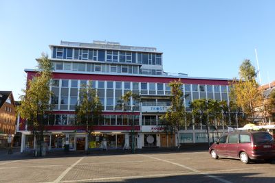 I 1962 oppførte sameiet Stortorget 4 A/S en større forretningsgård. Rogers restaurant flyttet inn i 2. etg og ble det mest populære ungdomsstedet i byen. (Helge Michaelsen), (1984).