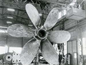- Etter støping måtte propellene omhyggelig pusses til sin riktige form.
