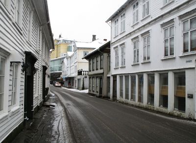 Strandgaten i Farsund går fra Torvet sørover til Havnegaten.