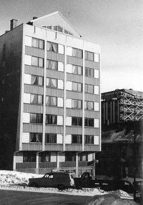 Kommunen stilte tomta til disposisjon for Tromsø kvinneråd som bygde hybelhus for enslige eldre i 1959. Dette var den første høyblokka i Tromsø sentrum. - Festekontrakt for 99 år, i 1959.