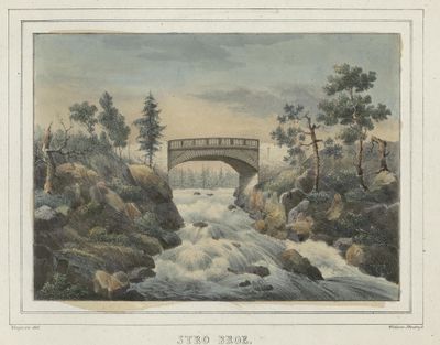 "Magnus Olsen gjør mig opmærksom paa Navnet Strubro (udt. stru'bru), Navn paa en Bro over Nidelven ovenfor Arendal (ved Fossen «Strubrofos»). Her er Elveleiet trangt. A. Helland oplyser om denne Lokalitet: «I Strubrofoss var løbet under broen kun 7,5 m. bredt, og man havde ofte meget store tømmervaser her, som det ofte var livsfarligt at rive . . . Ved sprængninger udvidedes løbet til 12,5 m. mindste bredde».[1]