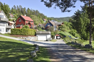 - I gamle dager var det ei ferje mellom Østre og Vestre Akkerhaugen som kunne frakte både folk og dyr, samt vogner og sleder. Ferga var ganske stor og hang i en lang wire som var festet i land på begge sider. Den ble trukket med håndmakt på samme måte som den andre ferga i Sauherad, som lå mellom Sanden og Farvøllen. De som hadde arbeid med å frakte folk over Sauarelva kaltes «sundmenn». På elvebredden ved Østre Akkerhaugen sto fremdeles i 50 og 60 åra ei stue som ble kalt for Sundmannstugo. Her budde sundmannen som hadde ansvaret for å få folk, hester og vogner over elva fram til Akkerhaugsbrua sto ferdig i 1924. (Kulturminnesøk)