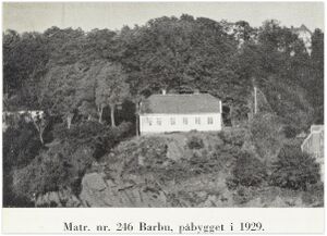 Sven Oftedals hus, matrikkelnummer 246 i Barbu. (Fra: "Lærer P. Oftedal. 1822-1890. Et bidrag til skolens historie" v. Sven Oftedal, utgitt 1943)