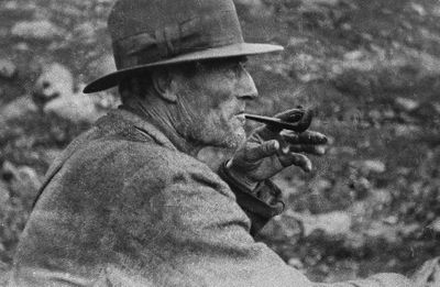 | Da Andres var med oss i 1949, hadde han med seg proviant for en uke. Den gang holdt kjentmennene seg med kosten selv. Både provianten og utstyret var meget spartansk. Andres ville ikke bo innomhus, så han lå hele tiden under en stenhelle 100 meter fra hytta.Et ullteppe fikk han av oss. Skift hadde han ikke med seg. Natt og dag i en svart vadmelsdress, Og ved regn et oljeslag over skuldrene. Men du verden for en sterk, sprek og effektiv 70-åring. | ||