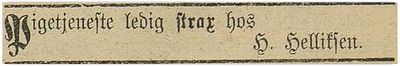 Sommeren 1878 annonserte skomaker Helliksen ette en ny skomakersvend.[9]