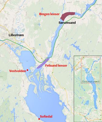 Bingen og Fetsund lenser. Kart.