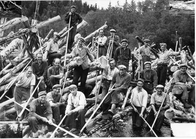Tømmerfløtere på hundrelappen 1950.