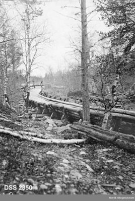 Tømmerrenne ved lille Langtjern på fløtningskanalen Femunden-Feragen.