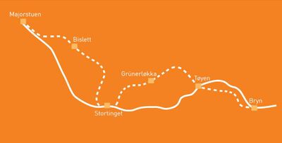 Planen er å la noen tog gå i eksisterende tunnel fra Majorstuen til Stortinget og videre via Grünerløkka; mens andre tog skal gå i ny tunnel Majorstuen-Stortinget og videre østover i eksisterende tunnel. Stortinget vil da danne et kryss i T-banenettet og dette skal kunne utnytte kapasiteten best.