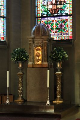 I Den katolske kirke er tabernakel navnet på skapet hvor nattverdsbrødet, hostiene, oppbevares etter nattverden. Etter katolsk lære forvandles de virkelig til Kristi legeme under nattverdsliturgien, og de som blir til overs må derfor behandles med respekt og sikres mot skjending. Tabernakelet er en svært viktig del av en katolsk kirkes interiør. Når katolikker tilsynelatende kneler eller bukker mot alteret i kirken er det etter katolsk forståelse Jesu legeme i tabernakelet de viser respekt for.
