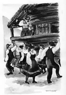 ska skipe ti spilemann'e so di sko høyre de!» , sa han. Tarkjell låg på Steinsland i Valle då han tok nordigjenom, - han hadde sjau mil å gange. Olav Steinsland tykte han var djarv, som torde våga seg mot Myllaren. «Han heve kjytt 'an vi gjere me so mykji leidt so tott' eg gama prøve», sa Tarkjell. Då han rakk fram mot Stavenes la han til med ein ovende ven slått og kom felande heim i tunet. Det var to gonger dei var innåt einannan i brudlaupet. Fyrste gongen var med kyrkja. Dei vigde etter messa allstødt i dei tidene. So var dei inn hiti kyrkjebygdi einkvarstad og sette på ladet. Med dei so venta på tidi, og langfarande folk åt nysta si, so dansa dei, - folk var so glade i gamal tid, mykje gladare enn dei er no. Brudlidet hans Kjetil var inn på Byklum, i Attistog [les: Utistog]; brudlidet hans Olav: i Lunden, på Bergje, - det var det jamne sonær, at brudlidi var inne på Bergje, avdi der var so slett eit tun. So la dei til å dansa, og Tarkjell sat upp-i loftsvali og fela. Då kom Myllaren og sette seg på durhella midt imot han, og kappfela med han. Men han fekk ikkje mål i fela: «Han musa, med Tarkjell våla», sa Olav Gråmann - han var med i brudlaupet, Olav. | ||