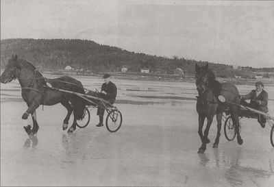 TG: Spennende for meg som liten jente å være med å se travløp på Temse. Der var fullt av folk, mange hester og stor stemning. Men det ble fryktelig spennende da en av de digre, mørke hestene gikk gjennom isen. Heldigvis fikk de reddet den ............ TS: Hendte et par ganger at hestene slet seg og tok av sted på egen hånd - skummelt for en liten gutt... Men moro med så mye folk på isen.. EKB: Ja det husker jeg godt, var med og solgte pølser. Fy det var kaldt på beina det var tidlig på 70 tallet ja det var tider men moro også.