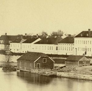 Thiisgården uten takarken sees midt på dette bildet fra 1800-tallet.