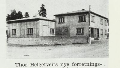 Forretninga flytta inn i eige lokale i 1938, og der hadde Helgetveit også bustaden sin. Forretninga hadde elles kjøleanlegg og fryseri som vart montert i 1938.