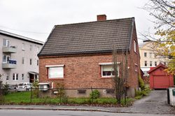 | 3 | Gnr. 170/59. En av sju nærmest identiske kommunale leiegårder oppført 1917–20 etter tegninger av stadskonduktør Peter Smidt. Dette markerte starten på sosial boligbygging, et tiltak for å avhjelpe elendige boligforhold i byen. Hvert hus hadde fire leiligheter på 2 rom og kjøkken med innlagt elektrisitet og gass og WC i kjelleren. Husene ble oppført i Nybyen i Rosenvolds gate, Tidemands gate og Schanches gate på jordene til den tidligere husmannsplassen Øvre Myra som ble innlemmet i byen 1. januar 1889. | |