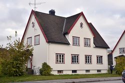 | 5 | Gnr. 170/60. En av sju nærmest identiske kommunale leiegårder oppført 1917–20 etter tegninger av stadskonduktør Peter Smidt. Dette markerte starten på sosial boligbygging, et tiltak for å avhjelpe elendige boligforhold i byen. Hvert hus hadde fire leiligheter på 2 rom og kjøkken med innlagt elektrisitet og gass og WC i kjelleren. Husene ble oppført i Nybyen i Rosenvolds gate, Tidemands gate og Schanches gate på jordene til den tidligere husmannsplassen Øvre Myra som ble innlemmet i byen 1. januar 1889. | |