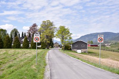 Tinghaugvegen sett nordover frå Nyhussvingen.