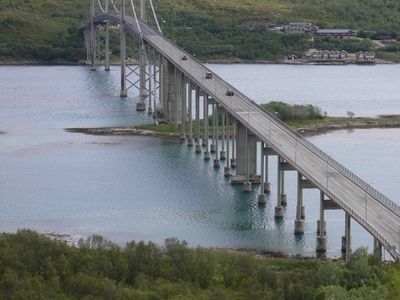 Tjeldsundbrua stod ferdig 22. oktober 1967 og erstattet Tjeldsundferga - fergeforbindelsen Steinsland-Lilleng som hadde sørget for fastlandsforbindelsen til Hinnøya siden 1930. Brua strekker seg over Steinslandsstraumen fra Leikvikhamn i Harstad kommune på Hinnøya til Steinsland i Skånland kommune på fastlandet.