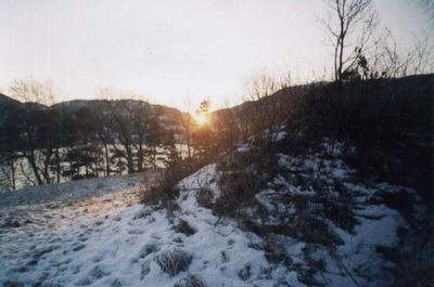 Dette biletet er teke sist det var sol på Todneset, 22. desember - 2001. Her ser ein tydeleg korleis solstrålene treff haugen på Todneset. Det heile varer berre nokre få minutt.