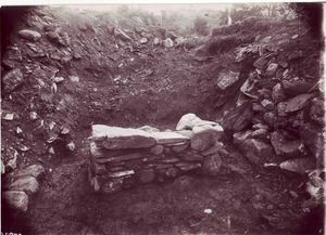 Her ser ein tydeleg "altaret" som kom fram under utgravinga i 1915. Foto: Lokalhistorisk arkiv i Tysnes