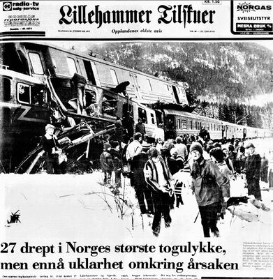 - «27 drept i Norges største togulykke». Lillehammer Tilskuer 1975.02.24. Digital versjon på Nettbiblioteket.