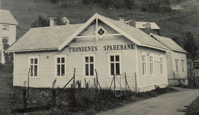 - I 1910 vedtok styret å kjøpe ei tomt på om lag ett mål av M. Mathisen på nedre Sama, der det i tillegg til å huse bank også ble planlagt å leie ut lokaler til Trondenes kommune. Her ble det til like også valgt en meget kompetent byggekomite: Amtsingeniør Saxegaard, advokat Karl Hansen og kjøpmann Arne Aronsen. I 1912 ble tomta planert, men da krigen kom 1914 ble saken satt i bero.