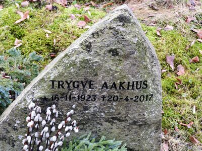 Trygve Aakhus er gravlagt på Haslum kirkegård i Bærum.