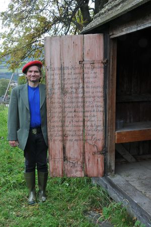 15 Sauefjøs. Med innskåret årstall 1777 over døren.