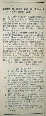 Det var vedteke på det førre amtslærarmøtet i Førde sommaren 1881 at eit nytt skulle haldast i 1884. Kyrkjesongar Anfinn Refsdal i Vik hadde fått ansvaret i 1881, og innkallinga hans til 1884-møtet er dagsett 3. juli og vart prenta i Sogns Tidende.