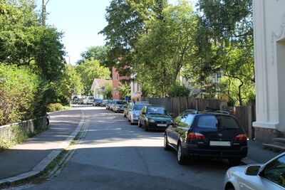 Bebyggelsen består av blokk- og villabebyggelse, her finnes flere store villaer i nordisk nybarokk.