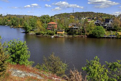 Sjøen strekker seg inn til sentrum i Moss, og renner der ut i Mosseelva, som i sin tur renner ut i Oslofjorden.