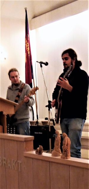 To ungdommer fra Haugesund som har funnet veien til Harstad Folkehøgskole, hadde tatt med seg gitarer og forsterker til lokalet. Med innlevelse og gode uttrykk framførte de en låt av Bob Marley! Men koret overrasket også – med julesangen som Harry Belafonte sjarmerte en hel verden med i sine glansdager, den tilegnet de Frelsesarmeen i Harstad. Og så - den store avslutningen; allsangen Deilig er jorden. Sannelig godt taket var godt spikret!