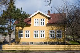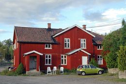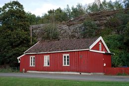 | 1/2 | Huset er bygget av slaggblokker fra jernverket og hadde to leiligheter. I den øverste enden var det butikk fra ca. 1900. | |