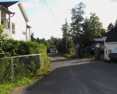 Motiv fra Vesleveien på Furuset i Oslo. Innkjøring til Bratzvillaen til høyre i bildet.