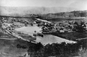 Vestfossen på 1870-tallet sett fra Smellhaugen.