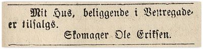 Ole Eriksen var født i Øyestad i 1807. I 1865 var han ugift. Ti år senere, i 1875, bodde Ole Eriksen i det samme huset, men da som losjerende. Ole Eriksen døde i 1893, 85 år gammel.