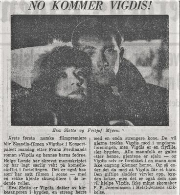 Vigdis er en spillefilm fra 1943 i regi av Helge Lunde, som også sto for manuset som var basert på Albert Wieseners roman Vigdis og hennes barns fedre fra 1931, utgitt under pseudonymet Frantz Ferdinand. Eva Sletto spilte tittelrollen og filmen hadde premiere 2. august 1943. Hennes rollefortolkning som den livsglade og vakre Vigdis bidro sterkt hennes samtidige renomme som et «skjønhetsideal» og en «drømmekvinne».