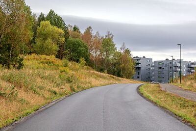 Villenga med blokkene på Midtskogen i bakgrunnen.