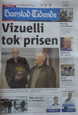 Vizuelli ble tildelt Harstad kommune, Harstadergionens Næringsforening og Sparebank1 Nord-Norges næringspris for 2013.