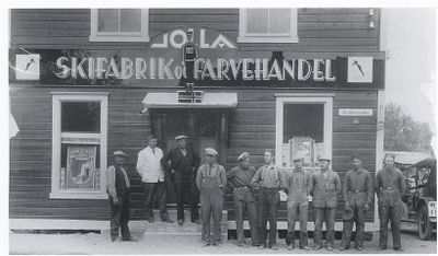 Volla Skifabrikk og Farvehandel var en av de største skiprodusentene i Lillestrøm-området, dessuten den eneste som kombinerte virksomheten med å drive fargehandel. Bildet viser at virksomheten ga arbeid til en rekke ansatte.