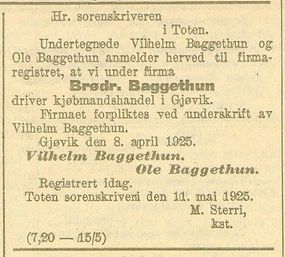 Foto: Norsk Kundgjørelsestidende 3. juni 1925