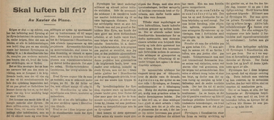 Planes meningsinnlegg i Dagbladet den 19. mars 1919 om luftfartens stilling og utvikling etter første verdenskrig